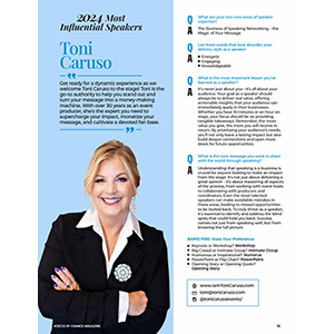 With over 30 years of event production experience Toni has brilliantly managed & successfully organized events small and large for the entertainment, corporate and business-to-business worlds. Toni has taken her skills, experience and behind the scenes event knowledge to professionals so they can help educate, inform and share their genius live on stage. She operates in the speaking world as she guides, teaches and helps speakers, experts & gifted messengers stand out and monetize their message.